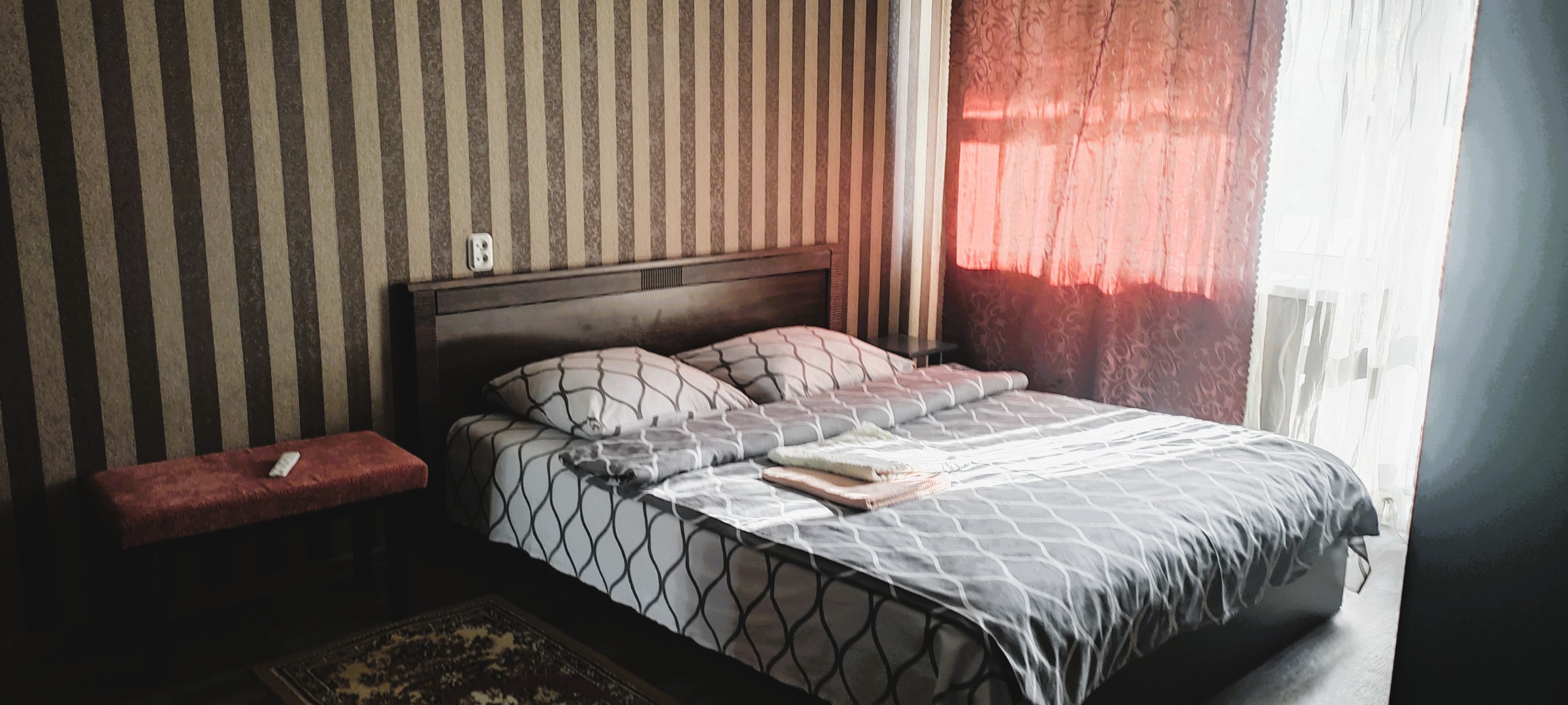 Домашний уют. Удобное расположение, все рядом : магазины, кафе, банк, аптека, мини рынок, остановка, парковка, супермаркет «Алми» Благоустроенная 2-х комнатная квартира в северном районе Комфортная.2 –х и односпальная кровать с ортопедическим матрасом и 2-х спальный диван, без лимитный интернет, Wi-Fi, кабельное телевидение, чистое белье, полотенца, стиральная машина, утюг, фен, посуда, средства личной гигиены, чай, сахар .Цена может варьироваться в зависимости от количества людей, дней недели и количества суток проживания. Документы предоставляется