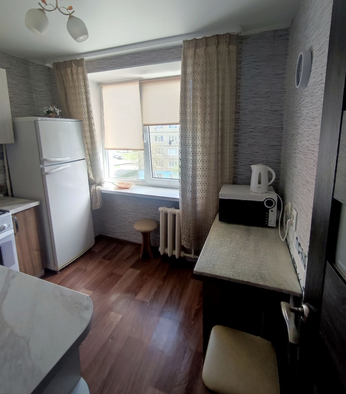 УдобстваБеспроводной интернет Wi-Fi, Телевизор, Домофон, Полотенца, Кабельное/спутниковое телевидение, Постельное бельё, Мыло, Туалетная бумага, Стиральная машина, Кофе, чай, Утюг, Фен, Шампунь, Душевая кабинка, Холодильник, Микроволновая печь, Посуда